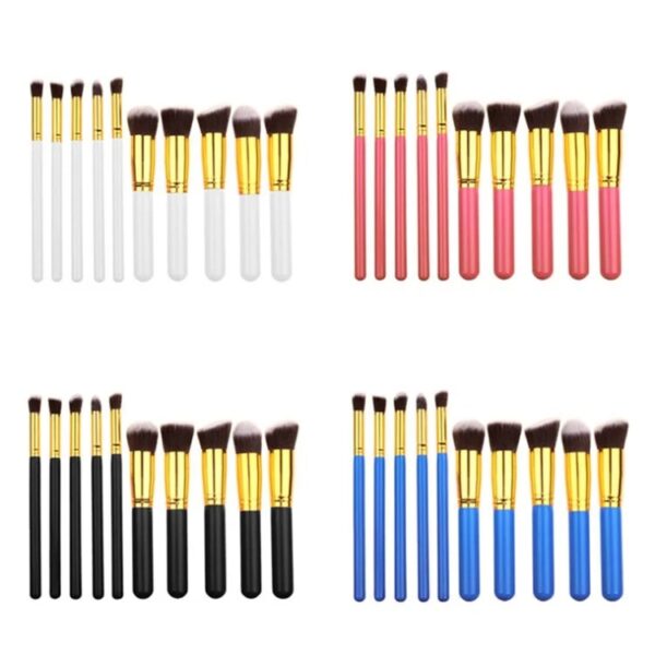 Kit profissional com 10 pincéis de maquiagem para pele e olhos, com cerdas sintéticas macias que garantem aplicação uniforme, esfumado perfeito e acabamento impecável. Ideal para uso diário ou profissional, com pincéis versáteis para contorno, base, pó e sombras.