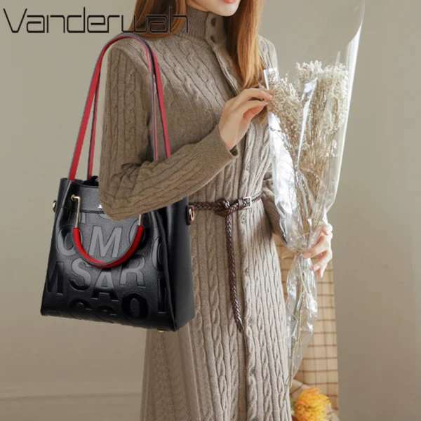 Luxuosa Bolsa de Ombro Retrô em Couro Macio PU com 3 Divisões Internas