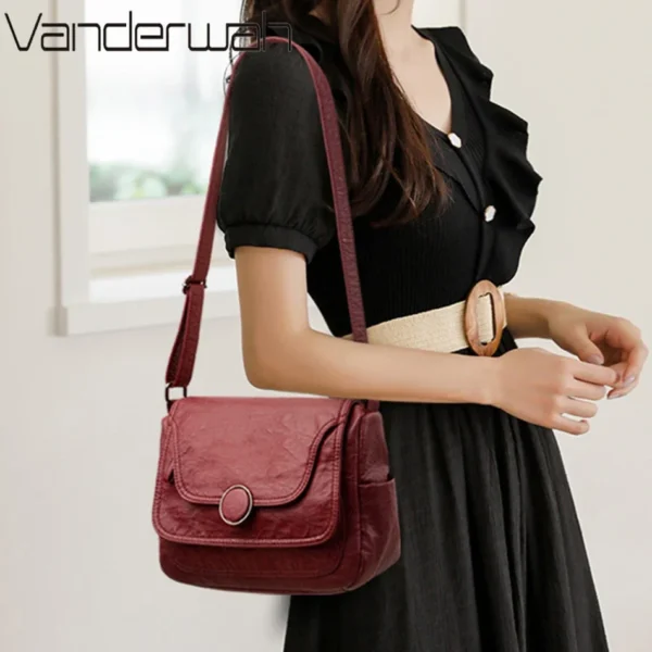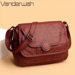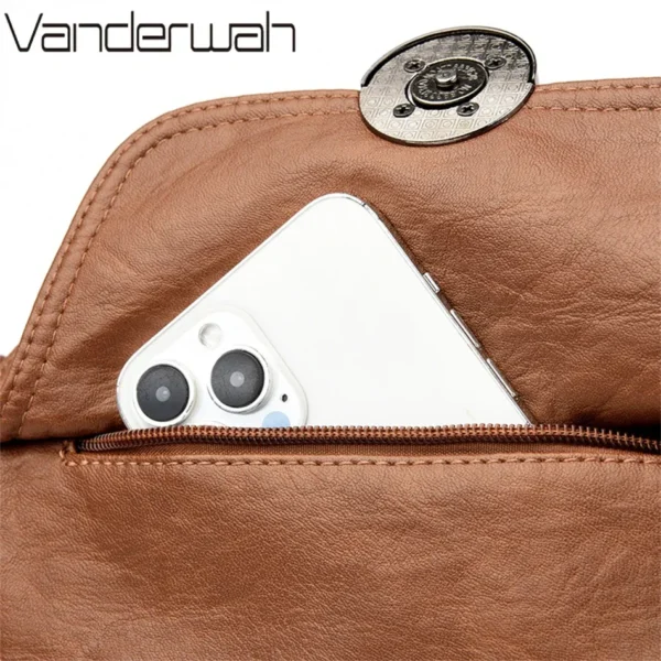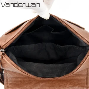 Bolsa de Ombro Versátil de Couro Macio para Mulheres com Zíper