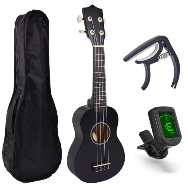 • Kit de arranque completo :Este conjunto inclui uma bolsa de show, sintonizador digital e capo Ukulele, fornecendo tudo o que você precisa para começar a tocar imediatamente.