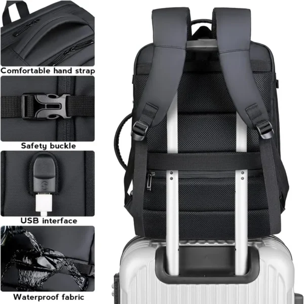 Mochila Mala de Viagem Executiva e Expansível à Prova D’água 40L, USB, Durável