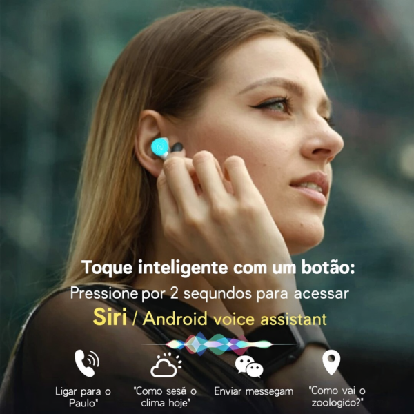 - Tipo: Fone de ouvido sem fio (Bluetooth)