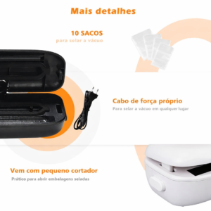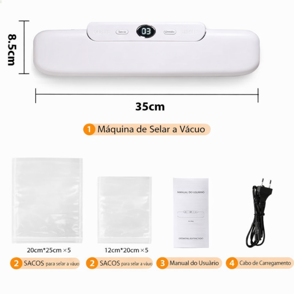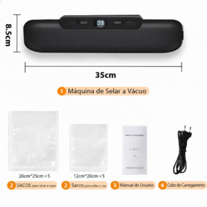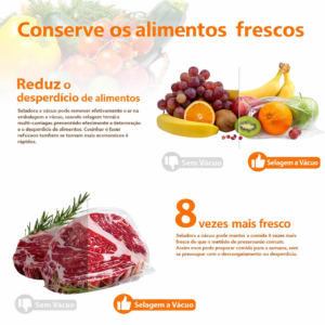 - Compatibilidade: Sacos plásticos próprios para selagem a vácuo
